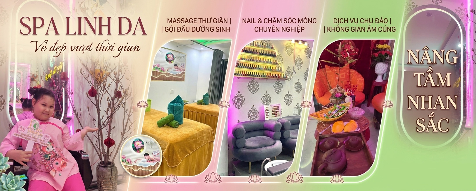 Chào mừng quý khách hàng đến với chúng tôi, cảm ơn quý khách hàng đã tin tưởng và lựa chọn chúng tôi là điểm đến chăm sóc sức khỏe và sắc đẹp. Chúng tôi tự hào mang đến những liệu pháp dưỡng sinh đỉnh cao, giúp quý khách thư giãn sâu từ bên trong, làm dịu nhẹ tâm hồn và cơ thể.